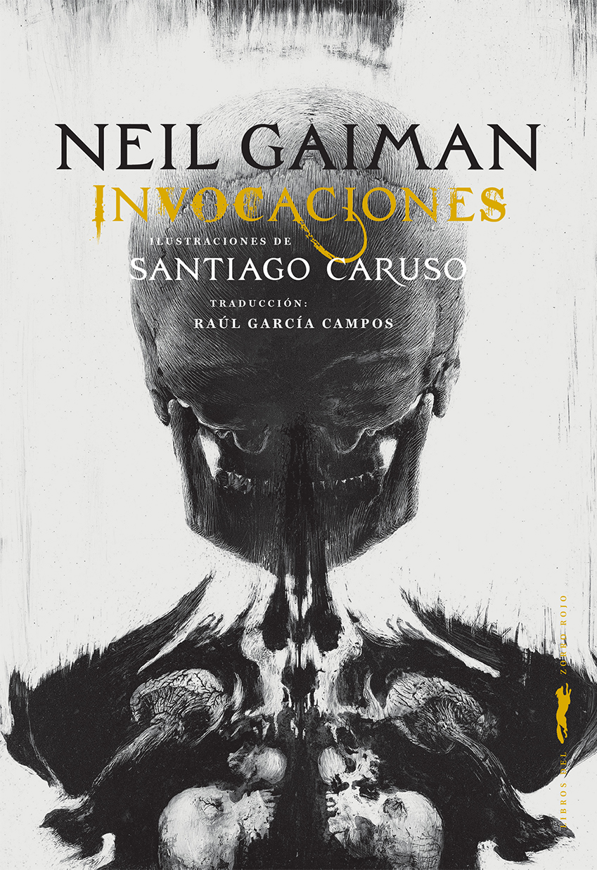 Neil Gaiman, uno de los autores de fantasía oscura más fértiles de nuestros días, regresa con Invocaciones. Una rica cornucopia de relatos de terror, ciencia ficción y reversiones de los cuentos de hadas, en la que Santiago Caruso, ilustrador insignia del catálogo de Libros del Zorro Rojo, despliega todo su arte. A través de diecisiete ficciones y poemas escalofriantes, esta antología propone un recorrido único por la obra literaria del multipremiado autor de Coraline y Sandman. Todo el potencial del universo gaimaniano toma forma en laberintos, realidades paralelas, mundos ominosos…, donde el escenario se torna impredecible y el espacio y el tiempo devienen sustancias maleables. Los seres más infernales habitan estas historias, que deleitarán a los amantes de la fantasía y del realismo mágico. En Invocaciones, Caruso recompone estos textos perturbadores en un viaje que es, a su vez, el espejo de nuestros miedos más profundos. Sus esgrafiados juegan con la doblez de cuerpos y conforman una fauna variopinta que nutre el concepto de lo monstruoso. La obra del artista argentino transita por los símbolos de la otredad, a la par que dialoga con la belleza de un romanticismo oscuro.