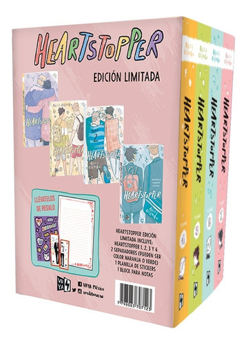 Heartstopper es la novela gráfica que ya conquistó los corazones de todo el mundo. Se trata de amistad, lealtad y amor. Abarca todas las pequeñas historias de las vidas de Nick y Charlie que juntas forman algo más grande, que nos habla a todos, tomo a tomo Nick y Charlie aprenderán lo que significa realmente amar. Este pack contiene los 4 tomos de la saga, 2 separadores, 1 planilla de stickers y 1 block para notas.